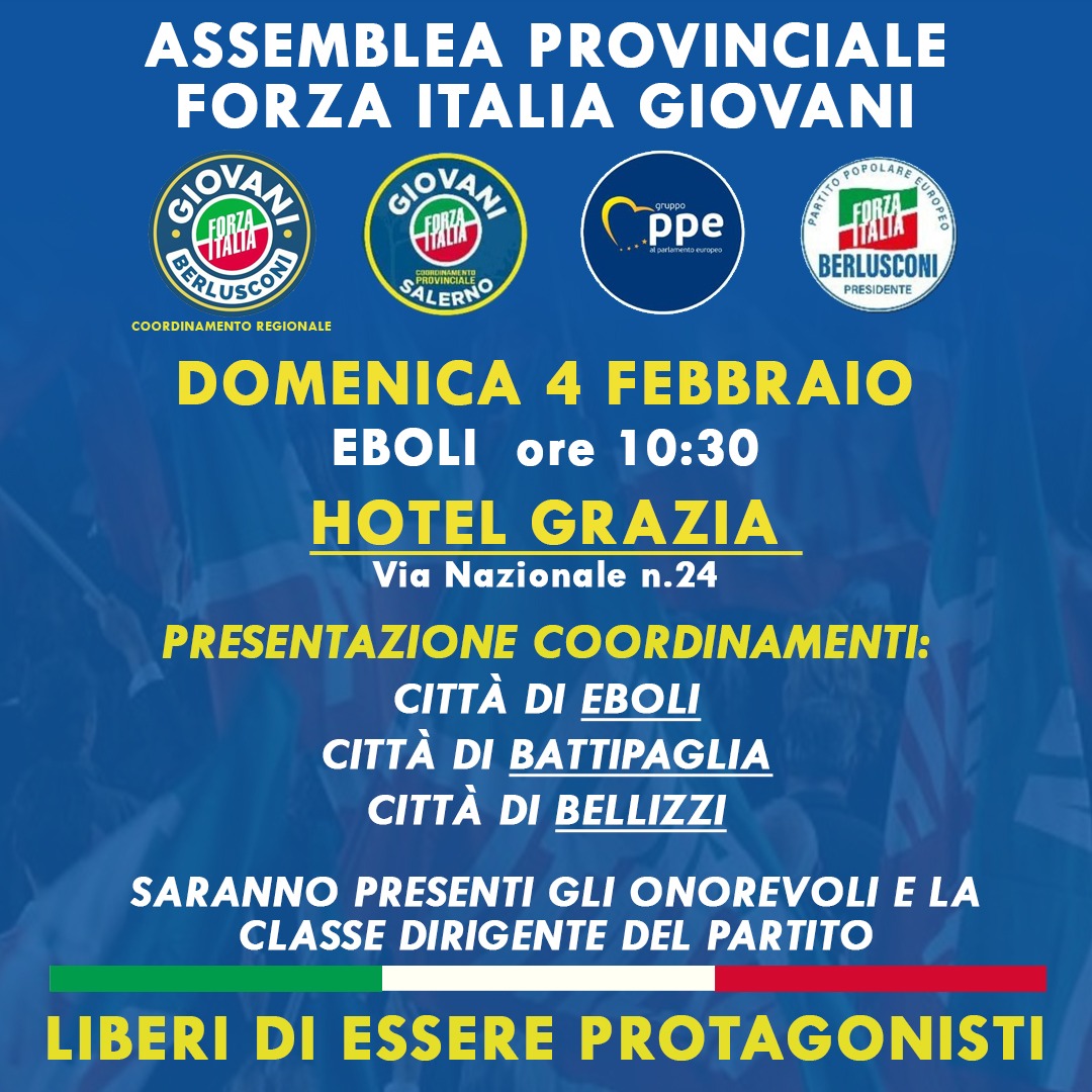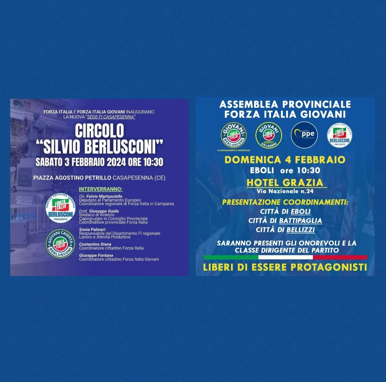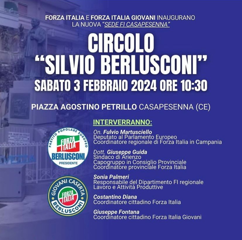 Eventi Forza Italia: Casapesenna (CE) il 3 Eboli, Battipaglia e Bellizzi il 4 febbraio 2024